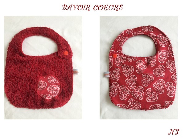LE BAVOIR A UN COTE EN EPONGE ROUGE BORDEAU ET L' AUTRE COTE EN COTON A MOTIF COEURS